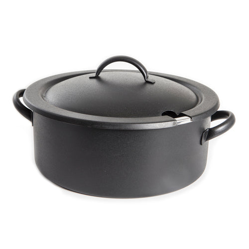 Soup Marmite, 5-1/2 qt., round, use with fuel or induction unit, with side handles & lift-off cover, food pan included, chip & scratch resistant, black Teflon™ coating, stainless steel, DW Haber, Homestyle (minimum = case quantity) (stock item)