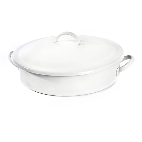 Chafer, 2 gallon, round, use with fuel or induction unit, with side handles & lift-off cover, food pan included, chip & scratch resistant, white Teflon™ coating, stainless steel, DW Haber, Homestyle (minimum = case quantity) (stock item)