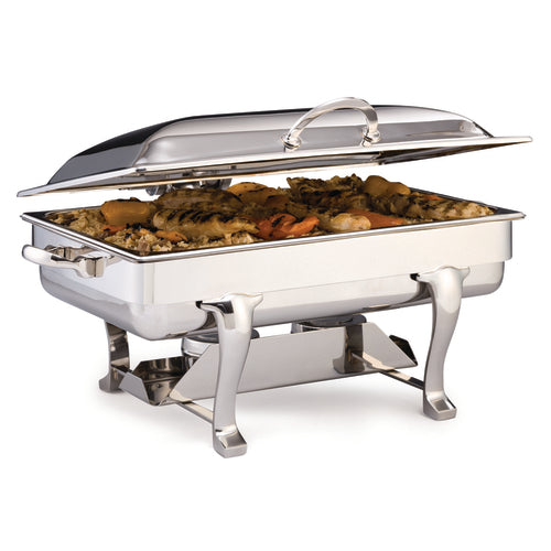 Chafer, 8 qt. rectangular, uses fuel heat, hinged cover stops in any position, with food pan, all welded, condensation retrieval system, induction ready, stainless steel, DW Haber, Millennium (minimum = case quantity) (stock item)