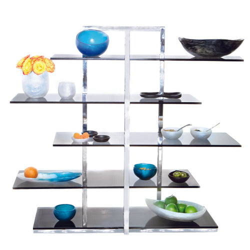 Riser, 5-tier, 41"H, (5) 36"L x 11"W black/smoke glass shelves, rectangular, polished aluminum, DW Haber (minimum = case quantity) (non-stock item)