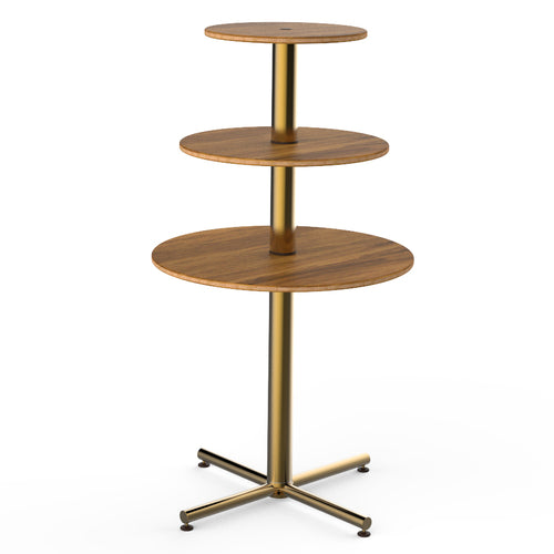 Mogogo Buffet Solutions Polo Display Table, 3-tier, 30" dia. x 55"H, round, high density bamboo finish, brushed brass segments, knockdown