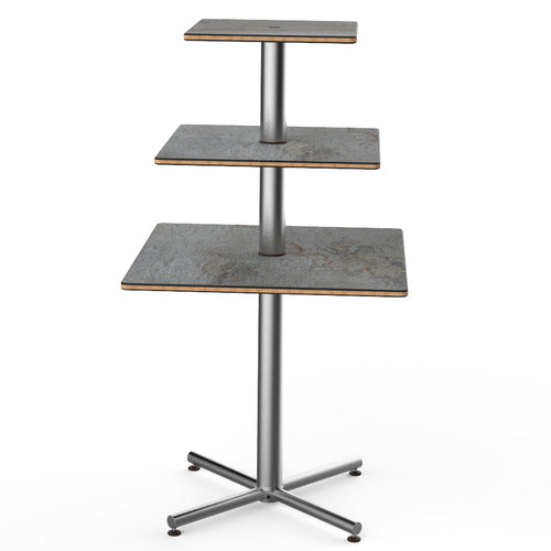 Mogogo Buffet Solutions Polo Display Table, 3-tier, 30" x 30" x 55"H, square, grey slate BHP high pressure laminate with bamboo core top, brushed stainless steel segments, knockdown