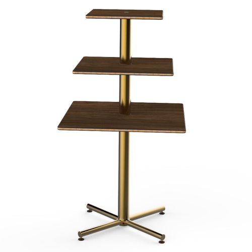 Mogogo Buffet Solutions Polo Display Table, 3-tier, 30" x 30" x 55"H, square, Bengali mango wood BHP high pressure laminate with bamboo core top, brushed brass segments, knockdown
