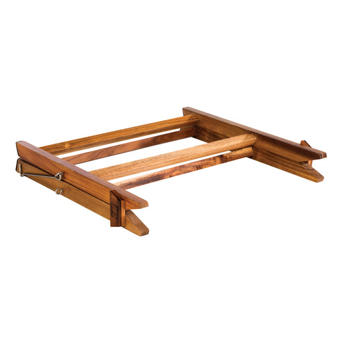 Serving Stand, 2-tier, 14-3/8"L x 10-1/2"W x 13-1/2"H, folding, includes: (1) black rectangular GN 1/3 slate tray, (1) black rectangular GN 1/2 slate tray, & (1) caramel acacia stand, APS® Germany (4 each per case)