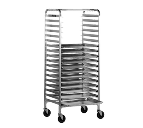 Bun Pan Rack, Mobile, 68"H, open sides, 2" slide spacing, capacity (24) 18" x 26" bun pans, riveted extruded aluminum construction, side loading, 5" dia. swivel casters, NSF