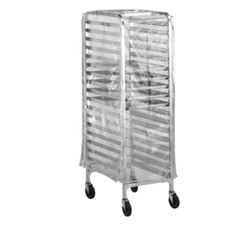 Rack Cover, Sanitary, constructed of transparent, heavy duty polished vinyl, 4 zippers, standard size: 23" x 28" x 58", NSF