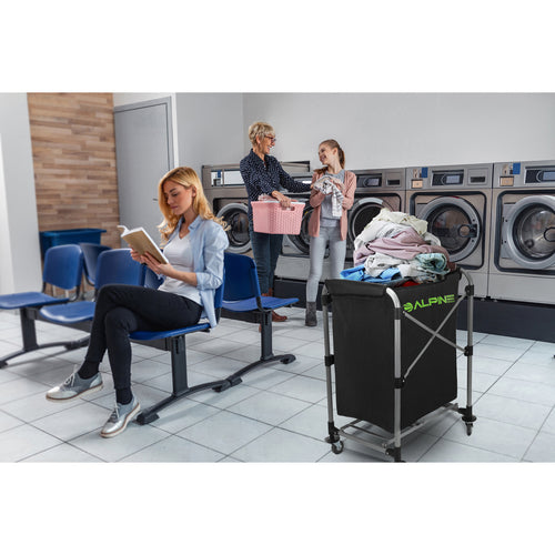 Laundry Cart, 4 bushel capacity, 1 section, cloth bag, collapsible folding cart, 4 casters with locks