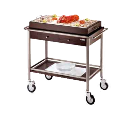 Seafood Trolley, 39-3/4"H (1010mm) x 20-7/8"W (530mm) x 37"H (940mm), wooden top with 18/10 ice container, sliding shelf & drawer, natural wood, Profile by Hepp