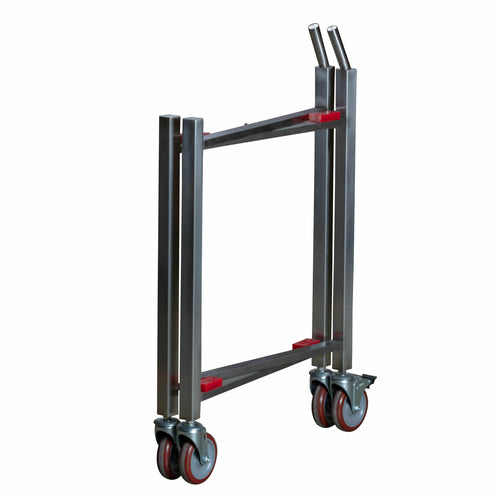 Flex X Bussing Cart, 20"L x 24"W x 36"H, 250 lb. max capacity, collapsible, (2) handles, holds (2) oval trays (#53506, not included), (4) swivel casters (2 with brakes), stainless steel, brushed finish