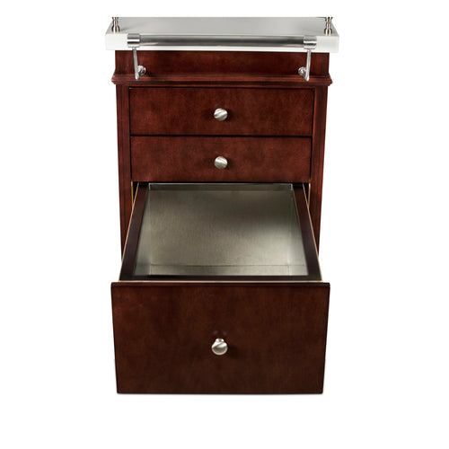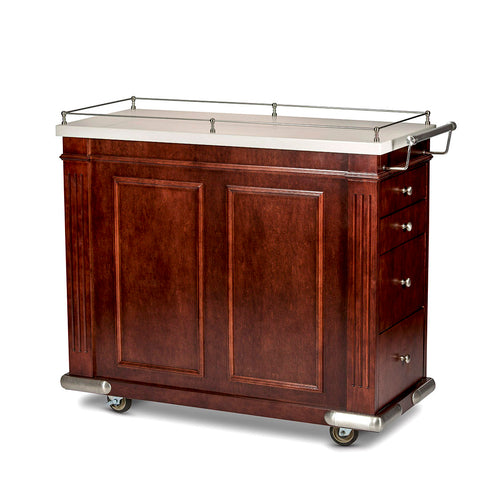 Bussing Cart, 48"L x 21"W x 42"H, enclosed base, incudes (4) drawers, (1) handle, metal railing, bumper corners, (4) casters, wood