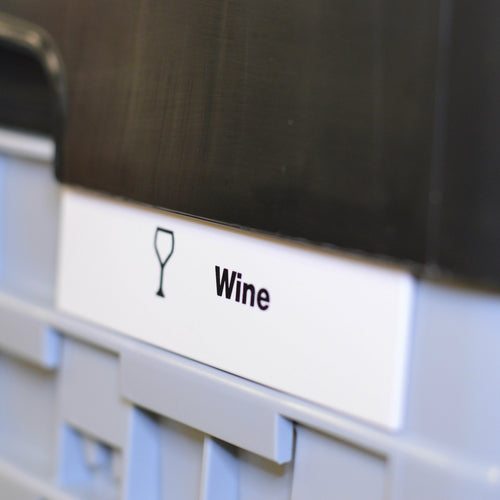 Camrack® Extender ID clip, 5"L x 1-9/16"H, snap on, for all camracks, pre-printed "Wine", ABS, white (must be purchased in case quantities)