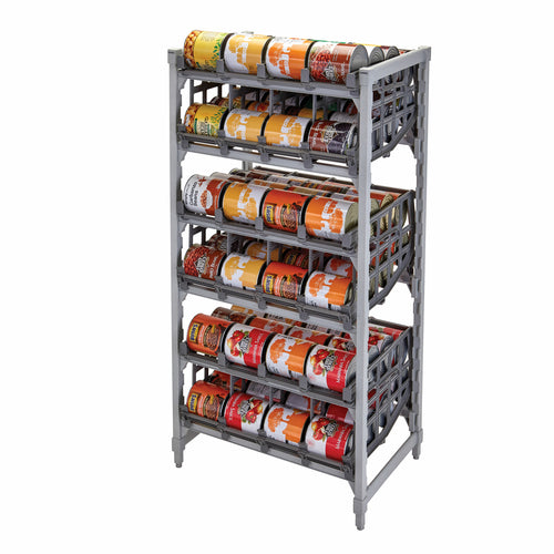 Camshelving® Premium Ultimate #10 Can Rack Stationary Unit, 24"W x 36"L x 72"H (26"W with can rack overhang), includes: (2) assembled post kits (posts constructed of steel with polypropylene exterior), (9) traverses & molded-in dovetails, (15) can rack panels, (72) can rack brackets, 800 lbs. capacity per shelf /2,000 lbs. max capacity, speckled gray (assembly required)