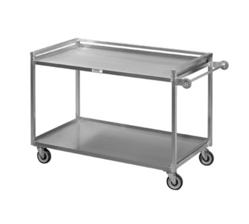 Banquet / Utility Cart, Heavy-Duty Utility / Bussing Cart, 53"W x 29"D x 36"H, Aluminum Construction, (2) shelves, 5" Swivel Plate Casters model # CPS45U, Made in USA, NSF, 60lbs. (ITEM WEIGHT ONLY), 500 lb. distributed weight capacity, push handle, weight does not include 50 lbs. for pallet weight