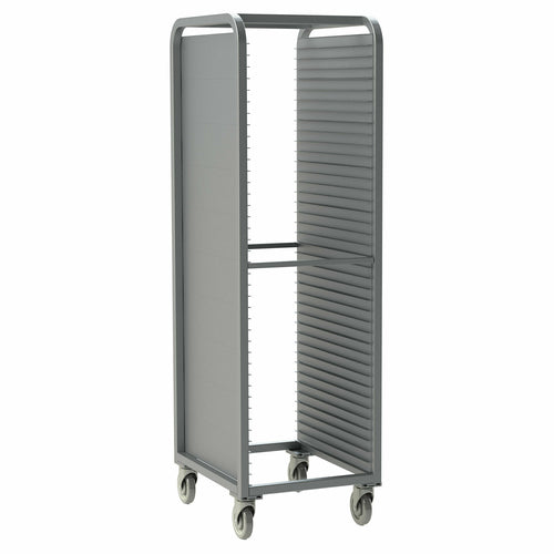 Economy Speed Rack Cabinet, 70"H, end load, (40) 18" x 26" pan capacity, closed sides, open top and bottom, 1-1/2" spacing, (4) 5" heavy duty poly-U casters, fully welded aluminum construction, NSF, Made in USA