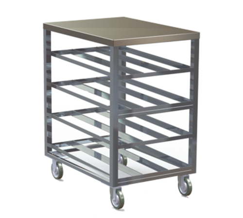Can Rack, 35"H, half size, mobile, (54) #10 can capacity, stainless steel top, fully welded aluminum construction, (4) heavy duty 5" swivel poly-U casters (2 with brakes), NSF, Made in USA