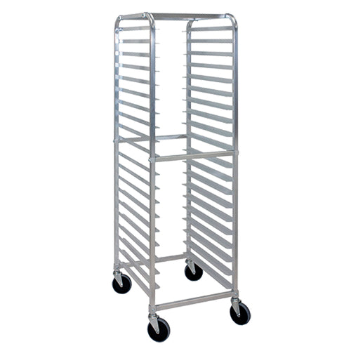 Knock Down Utility Rack, mobile, full height, (20) 18" x 26" extruded aluminum angles welded to frames on 3" centers, 18 gauge stainless steel fastens to top shelf, Hi-Tensile aluminum frame construction, ships knock down, 5" swivel casters, NSF