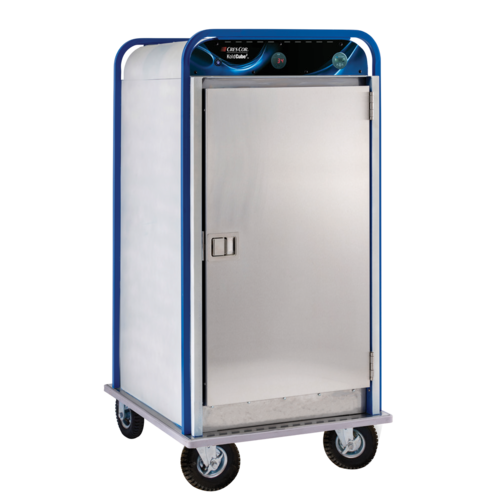 KoldCube Hybrid Refrigerated Cabinet, dual power (electric, battery) indoor/outdoor use, 3/4 height, insulated, (11) sets of locking angles, adjustable on 1-1/2" centers, 38°F fixed thermostat, front digital temperature display, external battery charger & battery indicator, 22 ga. stainless steel inner body, aluminum outer body with sun-reflective coating, heavy duty 8" all-terrain casters, (2 with brakes), rechargeable battery system, 12 Volt DC - Outdoor & 120v/60/1-ph, NEMA 5-15P with cord - Indoor, NSF