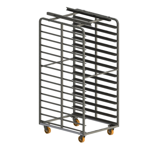 Roll-In Oven Rack, (20) 18" x 26" pan capacity, double side load, 6" spacing, stainless steel (specify lift style)