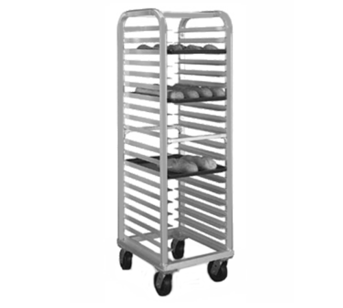 Lifetime Series Bun Pan Rack, 21-1/2" x 26" x 73"H, with 2"Wide angle slides for (30) 18" x 26" pans, slides on 2" centers, heavy duty, fully welded frame, aluminum construction, (4) 6" x 2" non-marking swivel plate casters, NSF