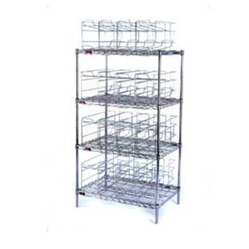 Can Rack Storage System, 4-tier, 36"W x 26-1/2"D x 83-7/8"H, (4) wire shelves with can storage racks hold up to (128) #10 cans, (4) 74"H posts, chrome-plated mild steel & heavy gauge wire construction, NSF (FLYER)