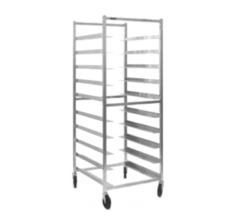 Panco® Rack, Mobile Oval Tray Storage, full height, open sides, with slides for (20) 23" x 28" oval trays, slides on 3" centers, welded tubular aluminum frame, front loading, 5" swivel stem plated casters, NSF