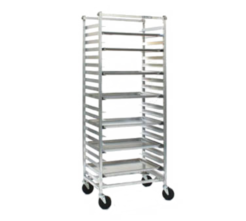 Panco® Rack, Mobile Pan, full height, open sides, with slides for 18" x 26" trays, capacity 20 - 18" x 26" sheet pans, welded square tubular stainless steel construction, side loading