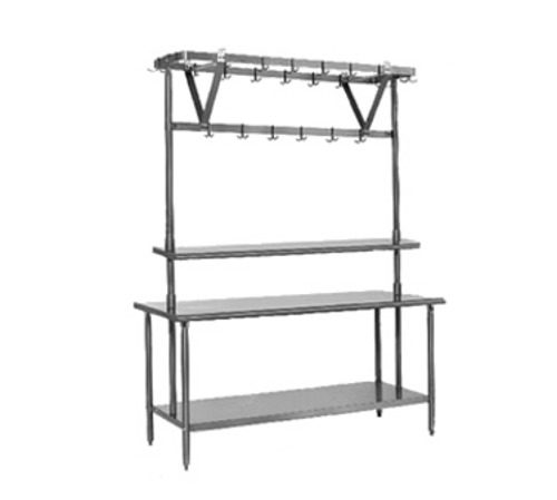 Pot Rack, table mount, 136"W x 20"D, triple-bar design with tubular table supports, constructed of 3/16" x 2" stainless steel flat bar, includes (36) double-pronged pot hooks, for 144"W table, NSF