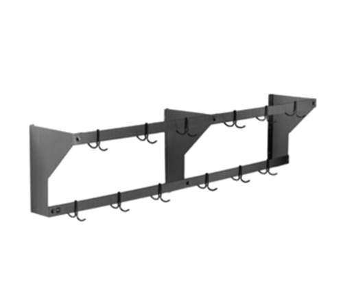 Pot Rack, wall mount, 48"W x 12"D x 16"H, double-bar design, constructed of 3/16" x 2" stainless steel flat bar, includes (8) double-pronged pot hooks, NSF (FLYER)