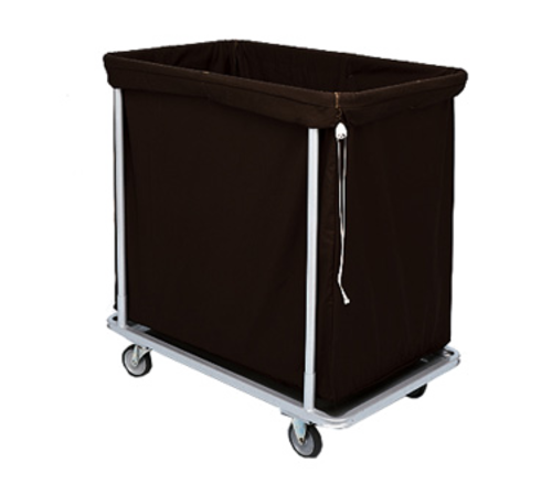 Laundry Cart, 12 bushel capacity, heavy duty black cloth bag, 1" steel tube frame, painted silver powder-epoxy frame, reinforced steel tube base, (4) 4" dia. grey wheels (2 rigid, 2 swivel casters)