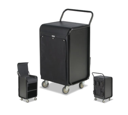 InRoom Attendant Cart, aluminum cabinet, (2) shelves, top tray organizer with hinged lid, heavy gauge steel tube vinyl dipped frame, ergonomic handle, snap-on magnetic front flap, snap-on amenity caddy, (4) swivel wheels, textured black finish