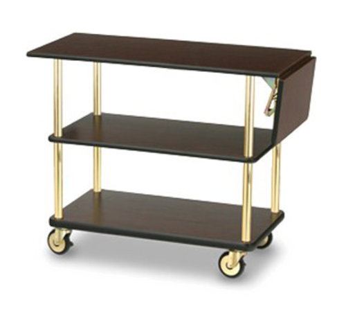 Standard Service Cart, (3) laminated shelves, (1) drop leaf (48"L with leaf up), polished brass support posts, casters
