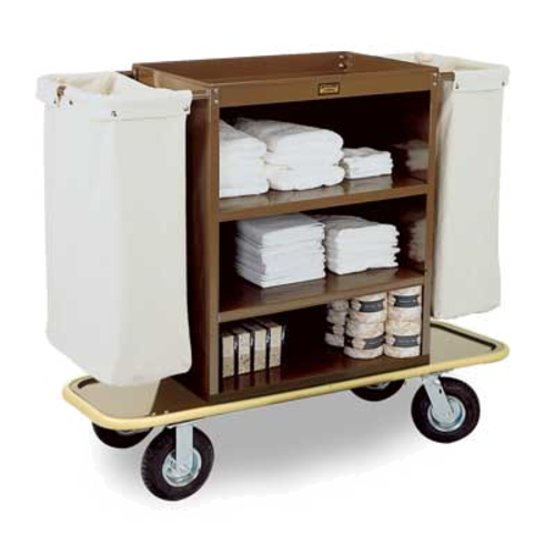 Guest Room Attendant Cart, 30"W x 19"D x 36"H cabinet, (3) shelves, low-profile handles, full wrap-around vinyl bumper, 8" dia. black pneumatic wheels, steel construction
