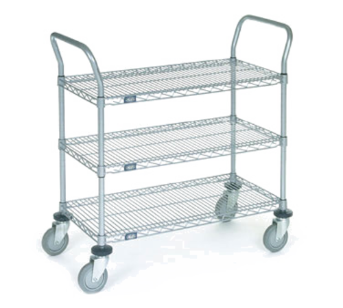 Utility Cart, (3) wire shelves, open base, 21" x 42", 2 "U" shaped handles, (4) 5" polyurethane wheel swivel stem casters, donut bumpers, 1200 lb. capacity, Nexelon™ blue metallic epoxy finish with Nexgard anti-microbial coating (Contact factory for price) (Contact factory for price)
