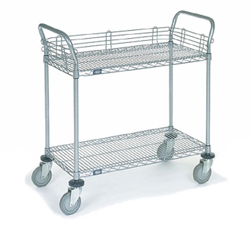 Utility Cart, (2) wire shelves, open base, 24" x 42", 2 "U" shaped handles, (4) 8" pneumatic wheel stem casters (2 swivel, 2 rigid), donut bumpers, 1200 lb. capacity, Poly-Z-Brite™ clear powder-epoxy over zinc-chromate electro-plating finish protected by (Contact factory for price) (Contact factory for price)