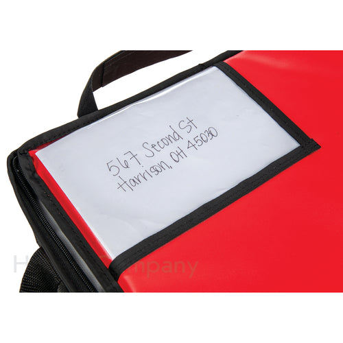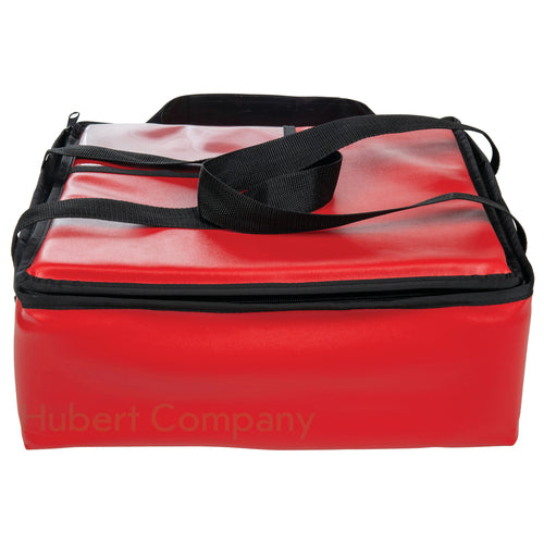 Meal Delivery Bag, 16" x 16" x 6"H, multi-use, top-load, with corner window, insulated, 0.6mm PEVA interior, PVC exterior, red