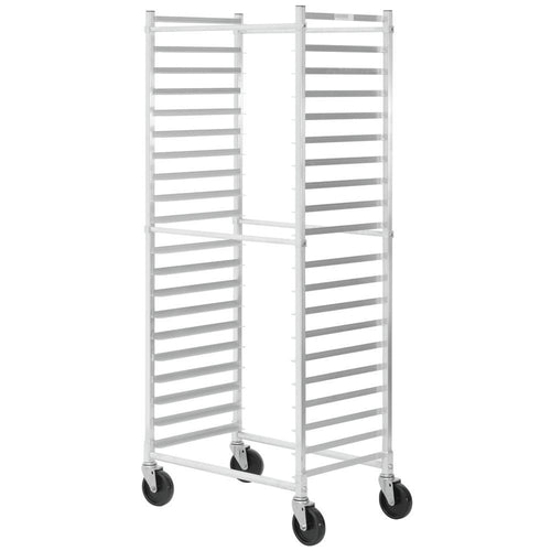Bun Pan Rack, 20-pan, mobile, side loading, 28" x 18" x 70"H, (20) 26" x 18" pan capacity, 3" shelf spacing, (4) 5" dia. swivel stem casters, aluminum, NSF