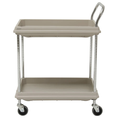 Utility Cart, 2-shelf, 32-3/4" x 21-1/2" x 41"H, 300 lb. capacity, integrated handle, deep ledges, non-slip polymer surface, rubber casters, plastic, grey, NSF