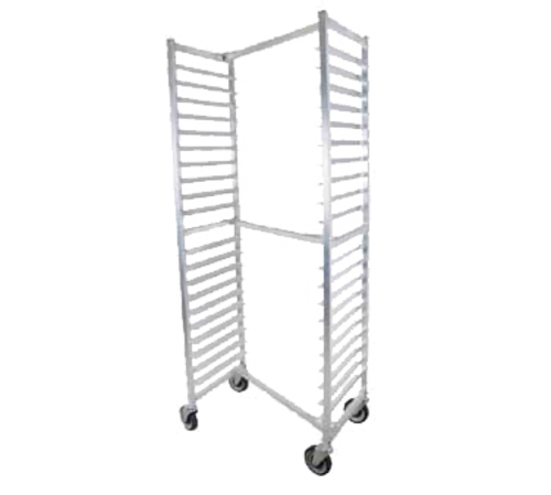 Bun Pan Rack, mobile, nesting, (20) pan capacity, 3" spacing, side loading, 28-1/2"W x 18"D x 71"H, 1" square tube frame, 5" swivel casters, 6063 aluminum construction, welded set-up, NSF (Available in Effingham and Nevada)
