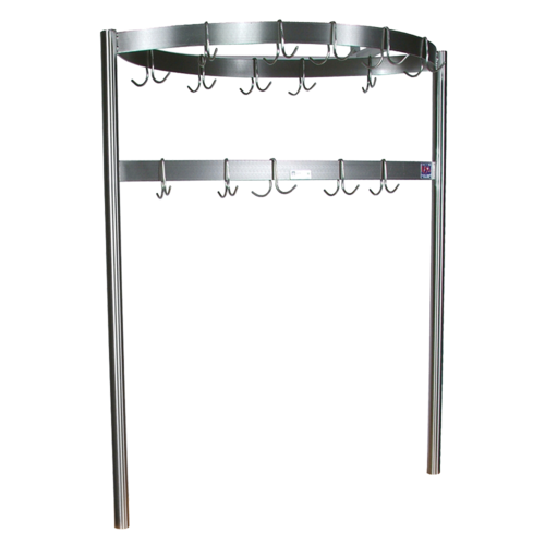 Pot Rack, table mount, boat-shaped, 67-1/4"W x 18-1/8"D x 48"H overall size, 3/16" x 2" stainless steel flat bar, includes (18) stainless steel double hooks, 16/300 stainless steel construction, NSF, CSA-Sanitation