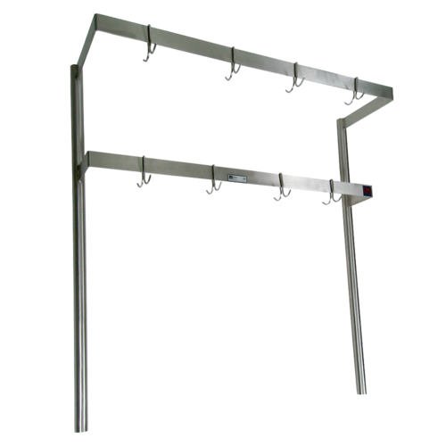 Pot Rack, table mount, double bar, 79-1/4"W x 13-5/8"D x 48"H overall size, 3/16" x 2" stainless steel flat bar, includes (14) stainless steel double hooks, 16/300 stainless steel construction, NSF, CSA-Sanitation