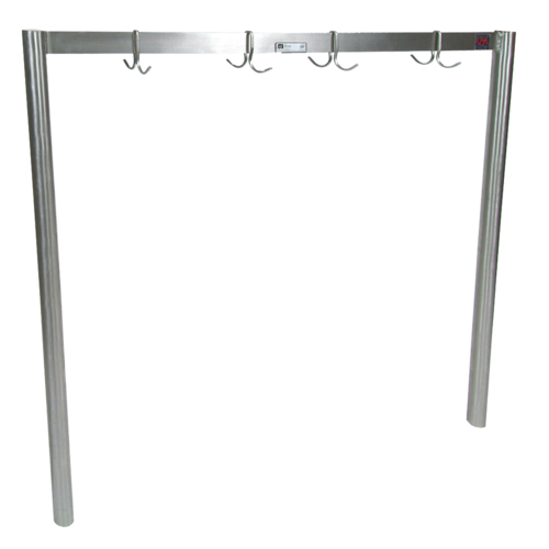 Pot Rack, table mount, single bar, 43-1/4"W x 1-5/8"D x 48"H overall size, 3/16" x 2" stainless steel flat bar, includes (4) stainless steel double hooks, 16/300 stainless steel construction, NSF, CSA-Sanitation