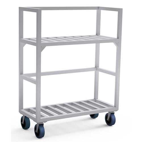 Mobile Beer Keg Rack, 42"W x18"D x 54-1/8"H, 2-tier, holds (4) total kegs, (2) shelves hold (2) kegs each, fully welded 1-1/2" square corrosion resistant aluminum tubing construction with corner support gussets, 6" swivel plate casters, (2 with brakes) ETL-Sanitation