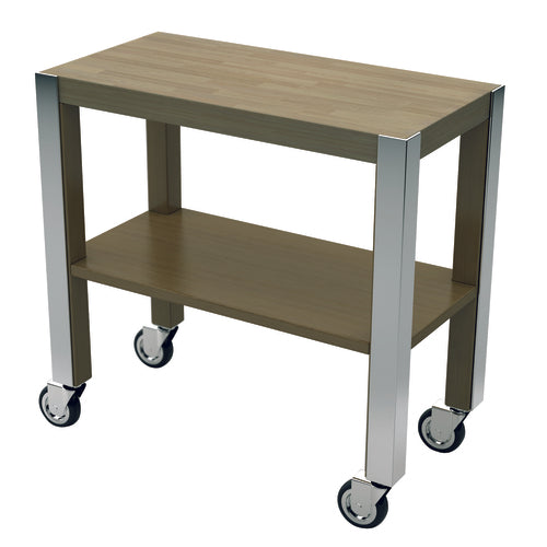 Trolley, 31-1/2" x 15-3/4" x 31-1/2"H, rectangular, with under shelf, solid wood, 18/10 stainless steel legs, walnut, (4) casters with non-marking wheels, London