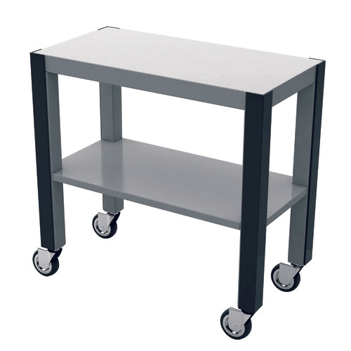 Trolley, 31-1/2" x 15-3/4" x 31-1/2"H, rectangular, with under shelf, MDF wood, glossy lacquered laminated panel, 18/10 stainless steel legs, white, (4) casters with non-marking wheels, London Chic