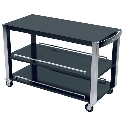 Trolley, 48-3/4" x 22-1/2" x 32-3/4"H, rectangular, with (2) under shelves, MDF wood, glossy lacquered laminated panel, 18/10 stainless steel legs and handle, black, (4) casters with non-marking wheels, Las Vegas Chic