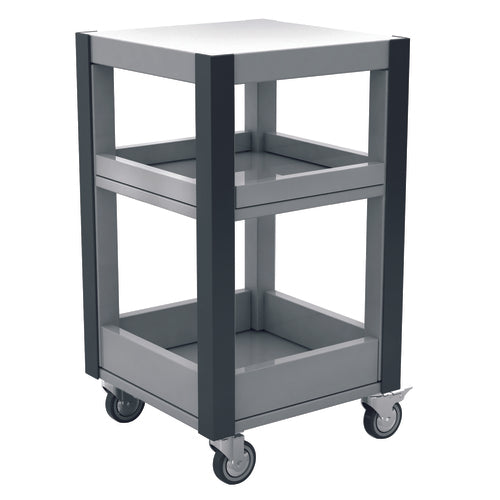Trolley, 19-3/4" x 19-3/4" x 34-1/4"H, square, with (2) under shelves, MDF wood, glossy lacquered laminated panel, 18/10 stainless steel legs, white, (4) casters with non-marking wheels, Havana Chic