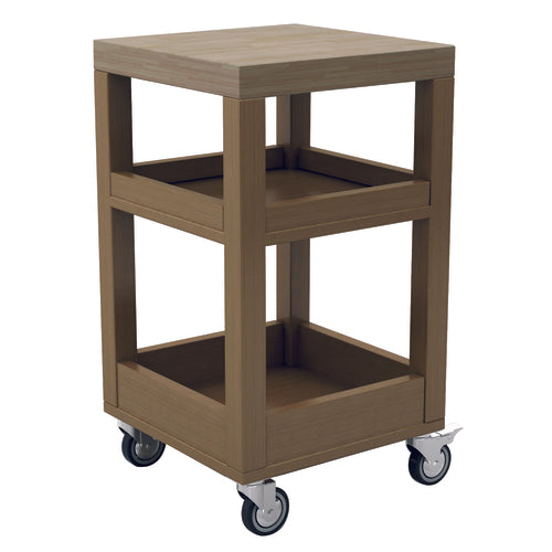 Trolley, 19-3/4" x 19-3/4" x 34-1/4"H, square, with (2) under shelves, solid wood, walnut, (4) casters with non-marking wheels, Havana VIP