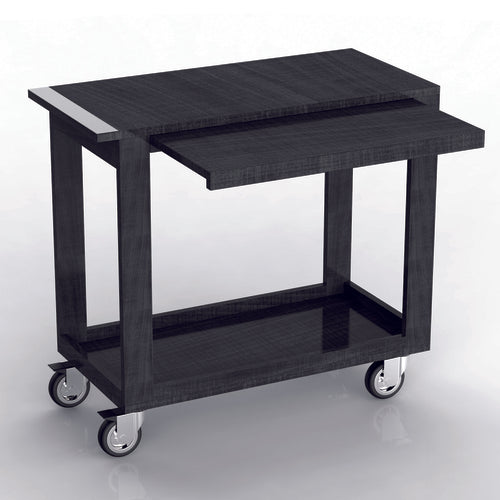 Trolley, 31-1/2" x 15-3/4" x 31-1/2"H, rectangular, with (1) under shelf and (1) slide-out shelf, laminated panel, wenge finish, (4) casters with non-marking wheels, Tevere