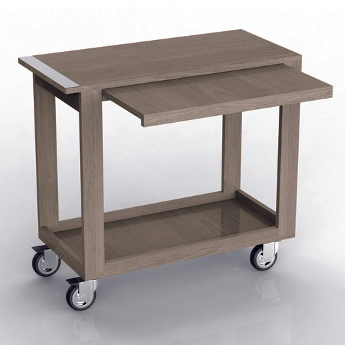 Trolley, 31-1/2" x 15-3/4" x 31-1/2"H, rectangular, with (1) under shelf and (1) slide-out shelf, laminated panel, light chestnut, (4) casters with non-marking wheels, Tevere