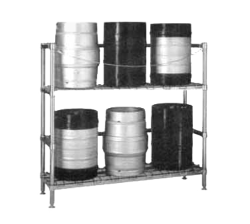 HD Super™ Beer-Keg Handling Rack, 60"W x 18"D x 56-1/8"H, (1) dunnage shelf (6) keg capacity, split-sleeve assemble device, foot plate, chrome plated finish
